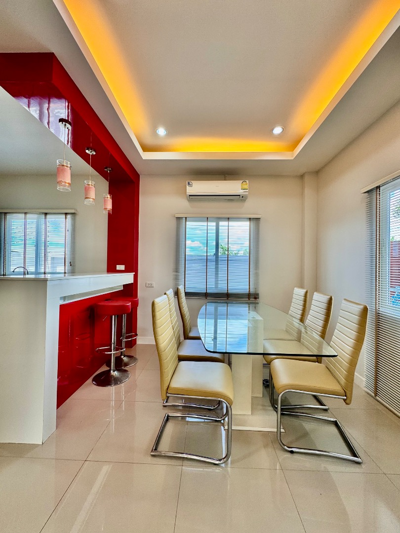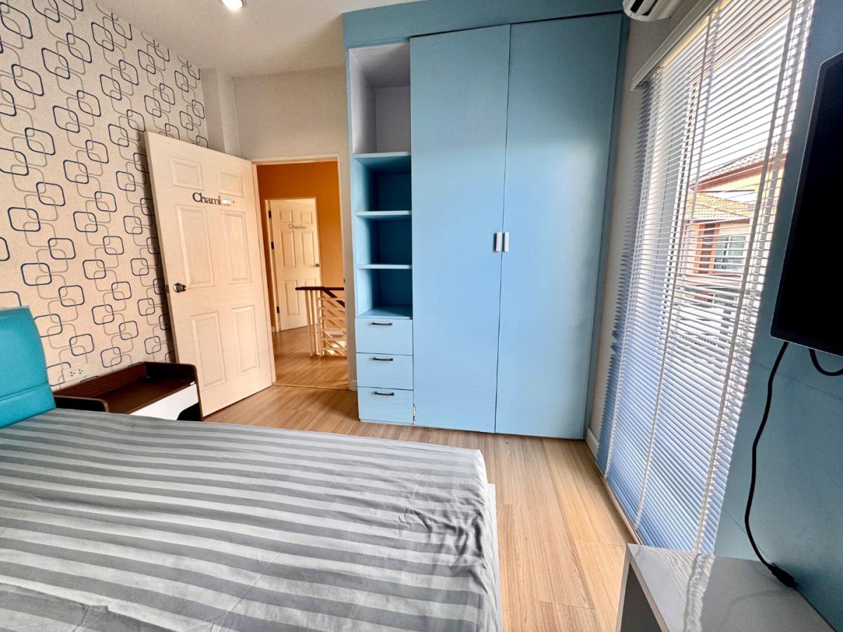 3 ห้องนอน 3 ห้องน้ำ พร้อมเครื่องใช้ครบครัน ในหมู่บ้านมีสระว่ายน้ำ และ ฟิตเนสพร้อมทั้งสนามเด็กเล่น และ รปภ.24 ชั่วโมง